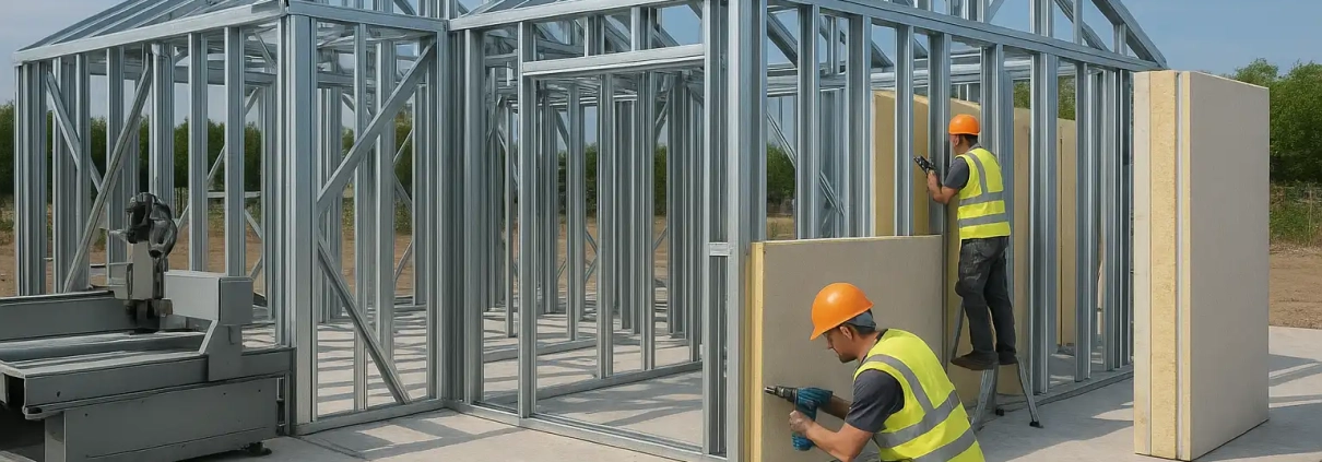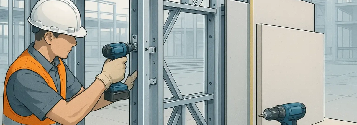 - نصب تخته پوششی: تختههایی مانند OSB، فیبر، یا سمنتبرد روی پروفیلها نصب و با پیچ خودکار محکم میشوند.