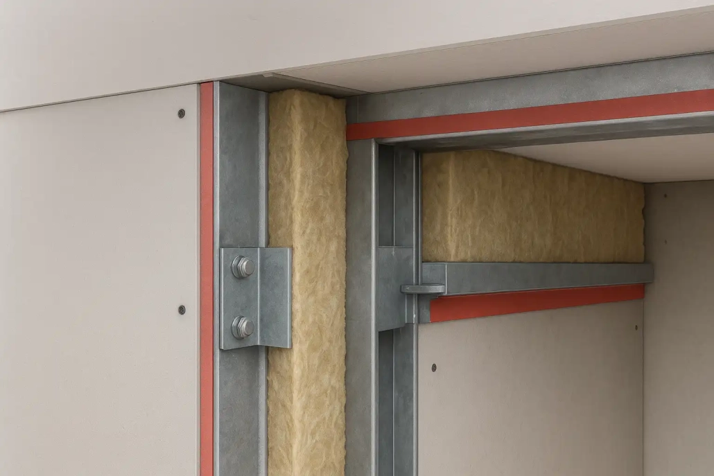 3. پرکردن فضای بین پروفیل‌ها با عایق غیرقابل اشتعال مانند پشم سنگ.