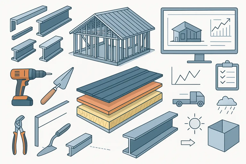• نرخ روز فولاد و مواد اولیه: بیشترین سهم هزینه سازه LSF مربوط به فولاد است و هر تغییر کوچک در بازار فولاد بلافاصله روی قیمت نهایی تأثیر می‌گذارد.